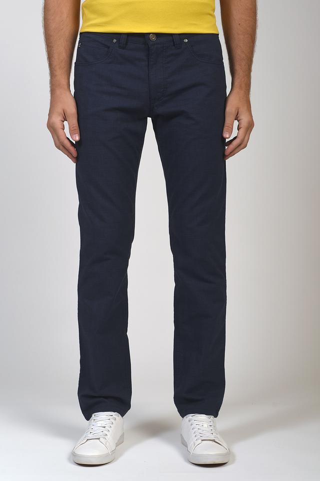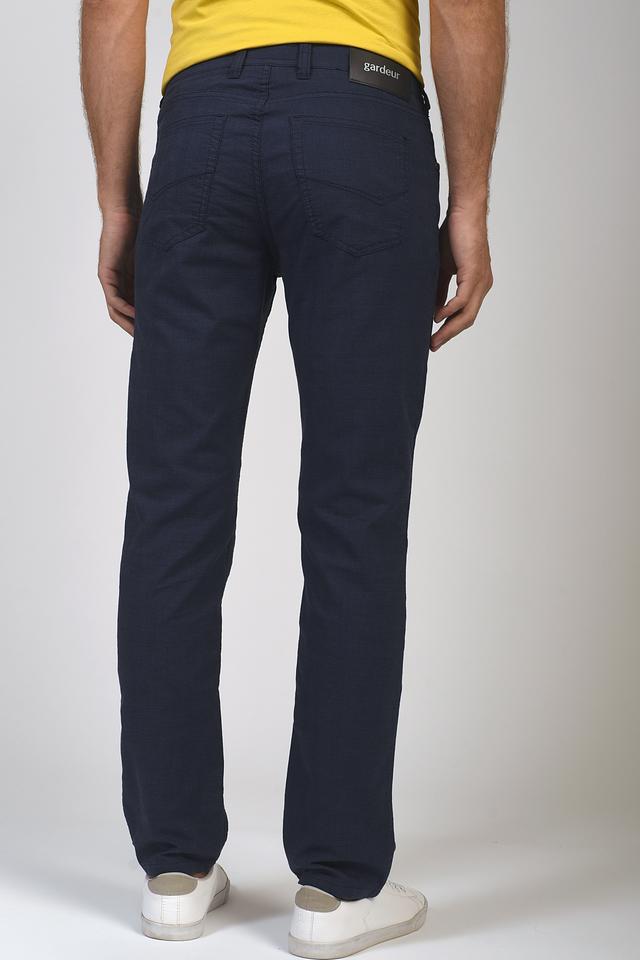 Цвет брюк – насыщенный темно-синий, который легко сочетается с различными элементами гардероба. Брюки имеют стандартную посадку на талии и застегиваются на молнию и пуговицу. На задних карманах присутствует фирменная нашивка Gardeur.