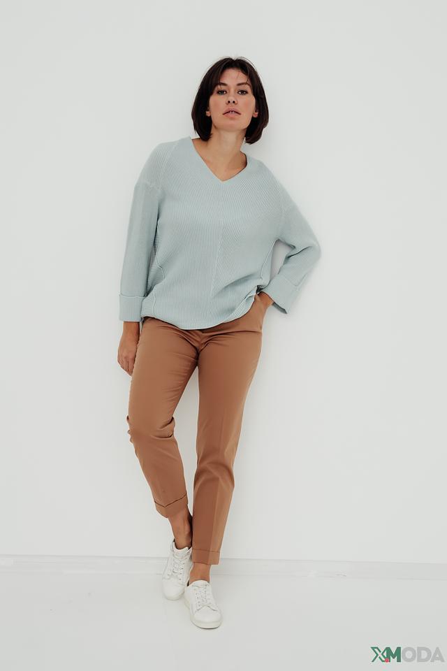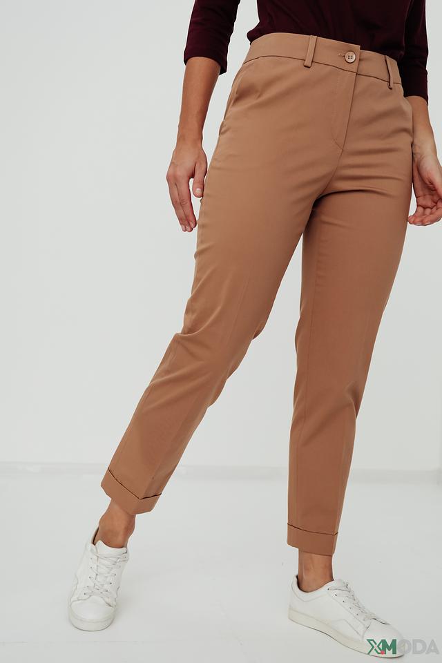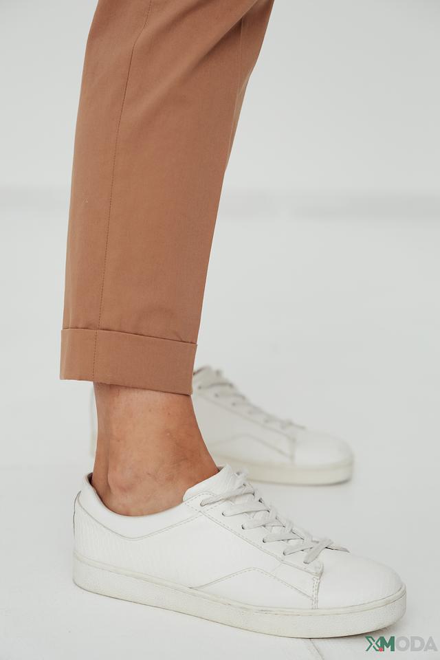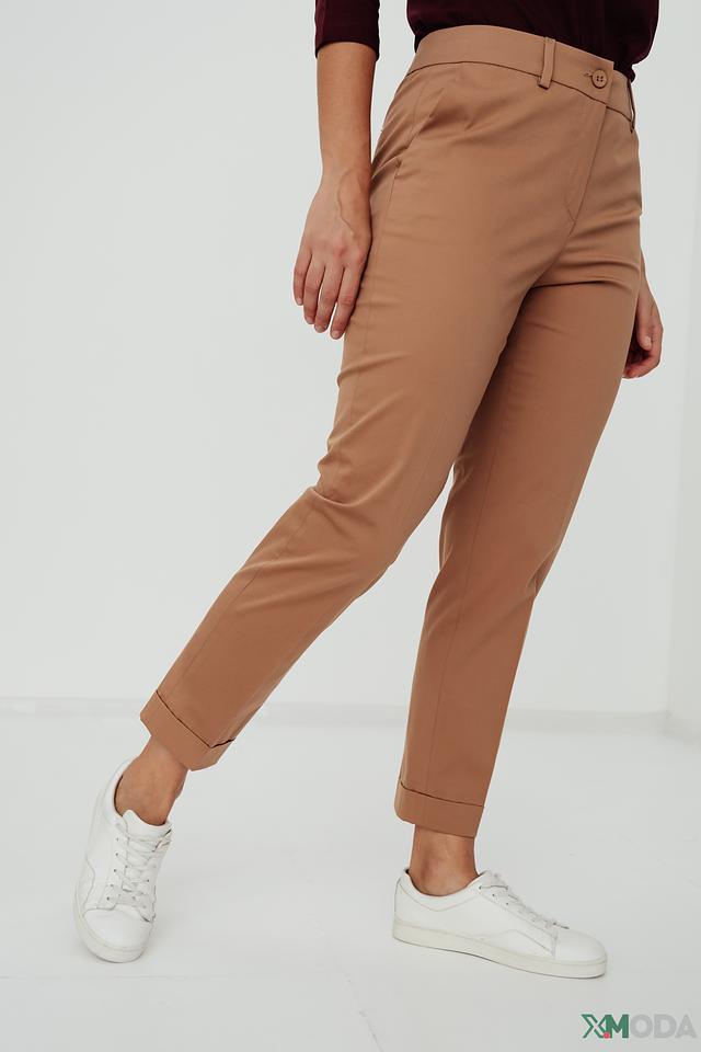 Брюки изготовлены из высококачественного хлопка (97%) с добавлением эластана (3%), что обеспечивает комфортную посадку и свободу движений. Зауженный крой подчеркивает фигуру, а подвернутые штанины придают образу непринужденность и современный вид.