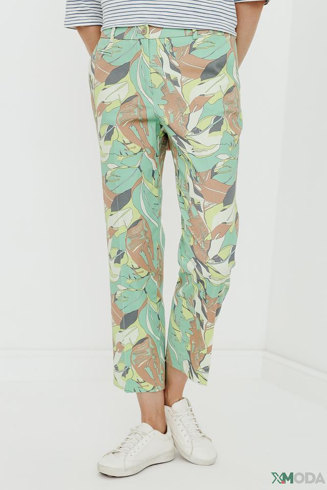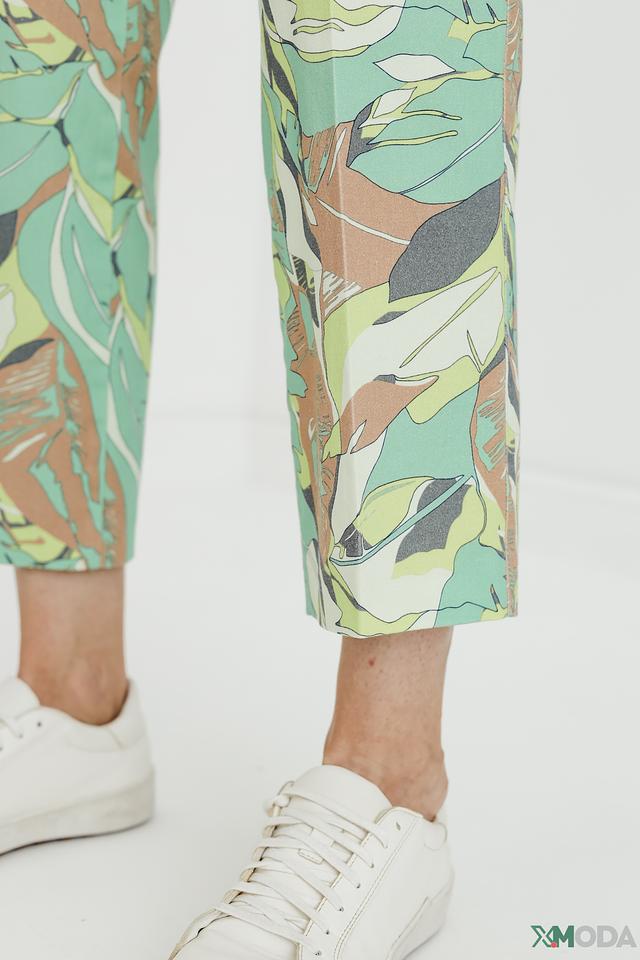 Капри имеют классический крой и длину 7/8. Они украшены ярким и оригинальным цветочным принтом, который добавит вашему образу свежести и легкости. Застежка на молнию и пуговицу.