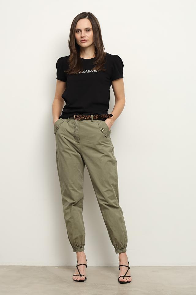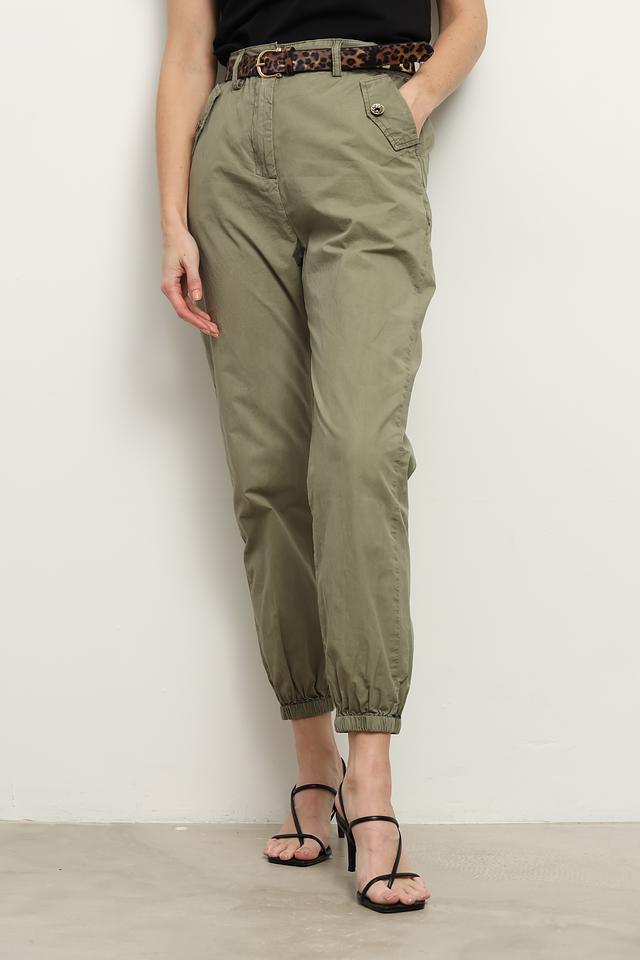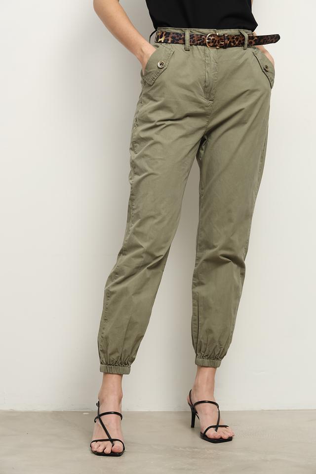 Брюки от Gaudi цвета хаки — удобная и стильная модель с боковыми карманами и эластичной резинкой на поясе. Изготовлены из 100% хлопка, обеспечивающего комфорт в носке. Состав: хлопок 100%