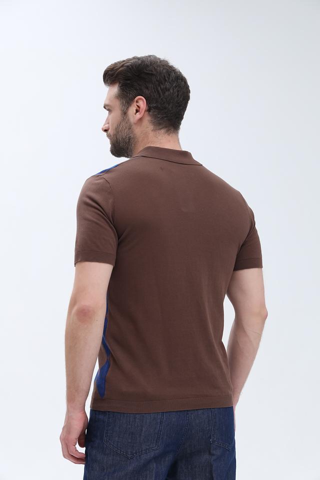 Мужское поло от бренда Gaudi – это сочетание стиля и комфорта. Данная модель выполнена в коричневом цвете и украшена выразительным геометрическим принтом в виде ромбов, выполненных в синем цвете.