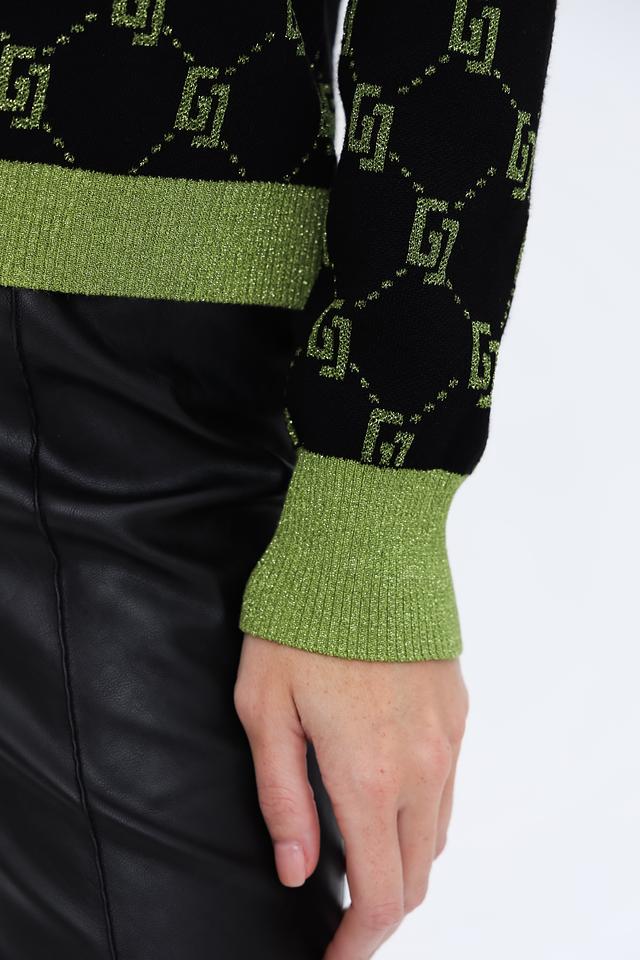 Этот стильный джемпер от Gaudi станет отличным дополнением к вашему гардеробу. Модель выполнена в зеленой цветовой гамме и украшена оригинальным геометрическим узором, который придает ей особый шарм.