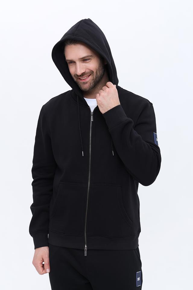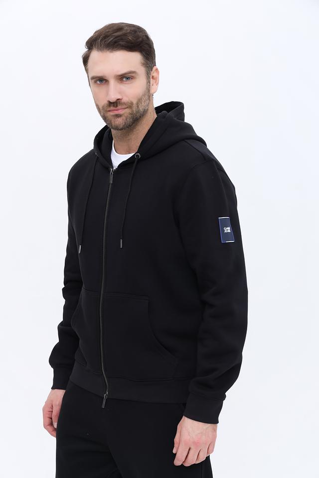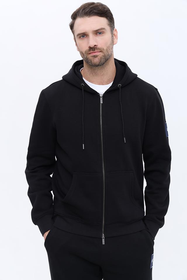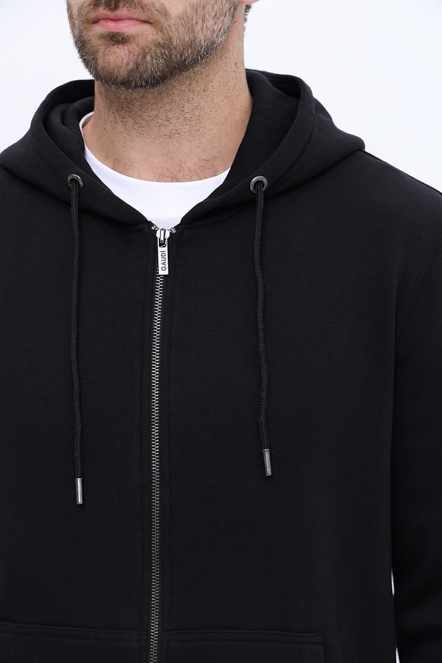 Чёрный мужской кардиган Gaudi на молнии – удобная и практичная модель для повседневной носки. Выполнен из мягкого хлопкового трикотажа с добавлением полиэстера и эластана, обеспечивающего комфорт и сохранение формы. Состав: Состав_2 хлопок 95%, хлопок 80%, полиэстер 20%, Состав_2 эластан 5%