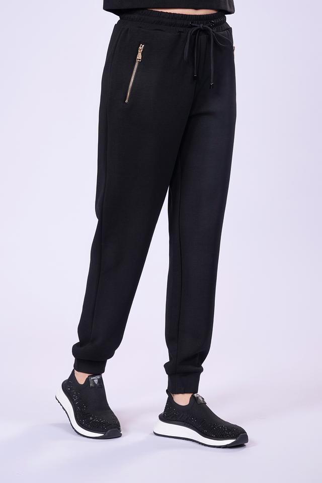 Черные спортивные брюки Gaudi – это удобная и стильная модель для повседневной носки. Брюки выполнены из мягкой ткани с добавлением эластана, обеспечивающего комфорт при движении. Декорированы молниями и стразами. Состав: Состав_2 полиэстер 85%, полиэстер 79%, Состав_2 эластан 15%, вискоза 14%, эластан 7%