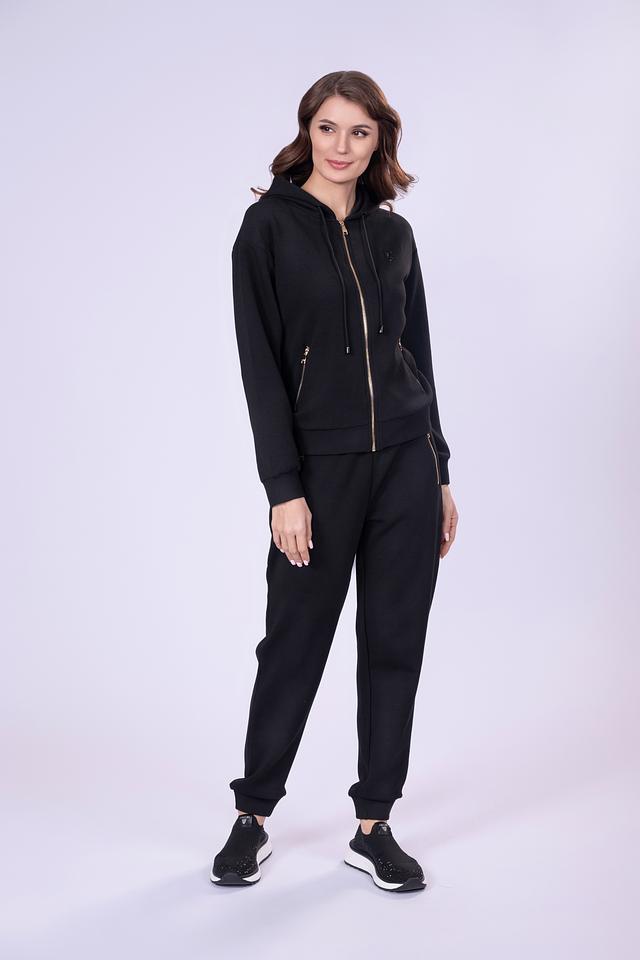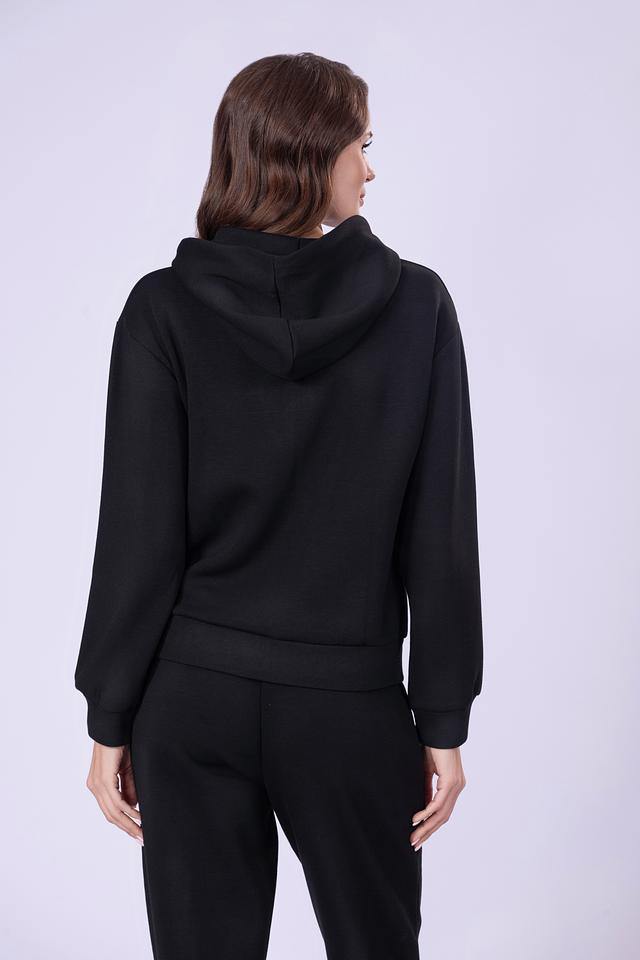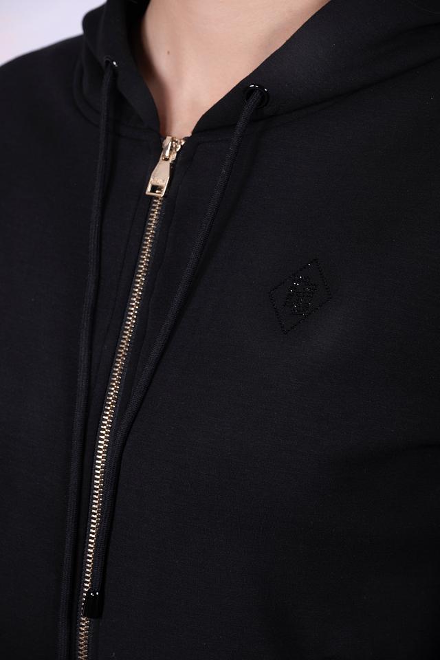 Чёрный джемпер от Gaudi с застёжкой на молнии и капюшоном. Модель выполнена из мягкого трикотажа с добавлением эластана для комфортной посадки. Отличается стильным дизайном и удобством в носке. Состав: Состав_2 полиэстер 85%, полиэстер 79%, Состав_2 эластан 15%, вискоза 14%, эластан 7%