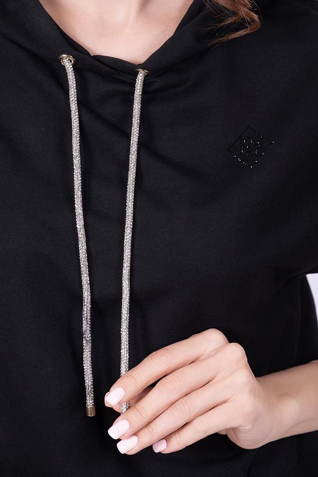 Женский жилет Gaudi черного цвета с капюшоном и декоративными шнурками. Модель без рукавов выполнена из мягкого и комфортного трикотажа, идеально подходит для создания стильного повседневного образа. Состав: Состав_2 хлопок 85%, хлопок 65%, вискоза 30%, Состав_2 эластан 15%, эластан 5%