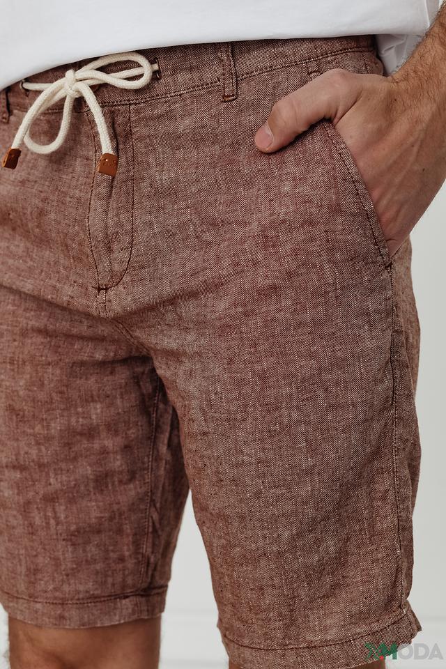 Шорты имеют прямой крой и длину выше колена, что обеспечивает свободу движений. Эластичный пояс дополнен шнурком для регулировки посадки. Ткань состоит из 55% льна и 45% хлопка, что делает шорты дышащими и приятными к телу.