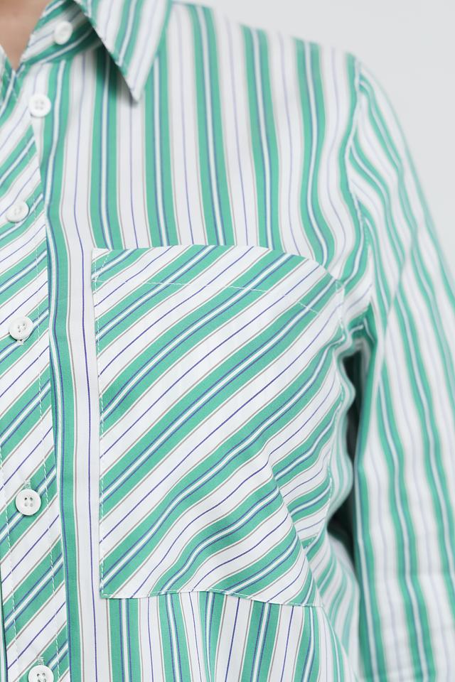 Женская рубашка Gerry Weber зеленого цвета в полоску с длинным рукавом. Изготовлена из органического хлопка с добавлением полиэстера и эластана, что обеспечивает комфорт и удобство в носке. Состав: хлопок органич. 68%, полиэстер 29%, эластан 3%