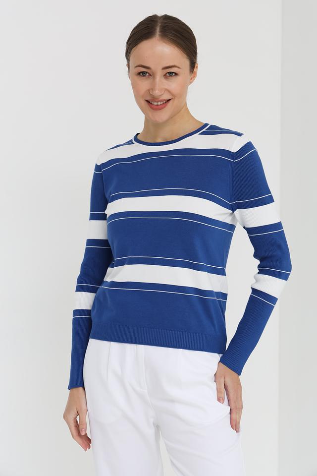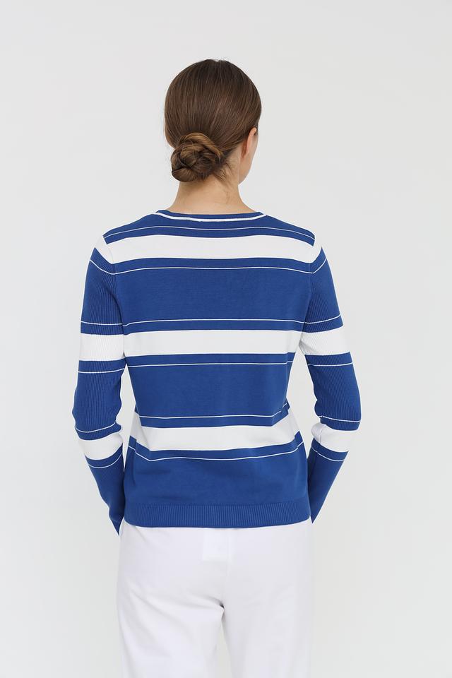 Этот пуловер от Gerry Weber станет отличным дополнением к вашему образу. Он выполнен в классическом стиле с полосатым узором, сочетающим в себе насыщенный синий и белый цвета.