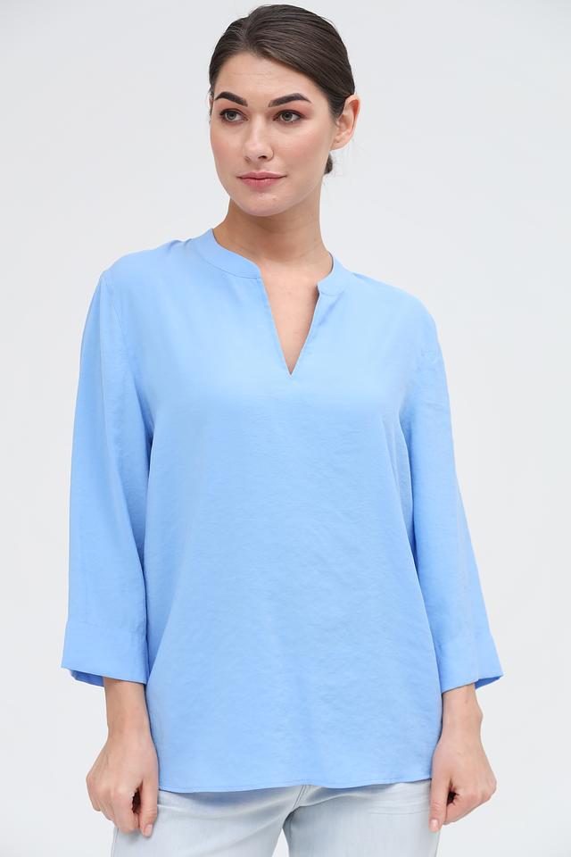 Женская блуза Gerry Weber голубого цвета с V-образным вырезом и рукавами 3/4. Изготовлена из мягкой и приятной к телу ткани, обеспечивающей комфорт в носке. Отличный выбор для создания стильного и элегантного образа. Состав: модал 84%, полиэстер 16%