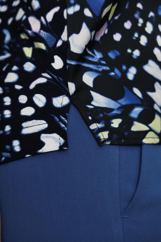 Эта блуза от Gerry Weber – отличный выбор для создания повседневного и элегантного образа. Блуза выполнена в чёрном цвете и украшена оригинальным абстрактным принтом, сочетающим в себе оттенки синего, белого и жёлтого.