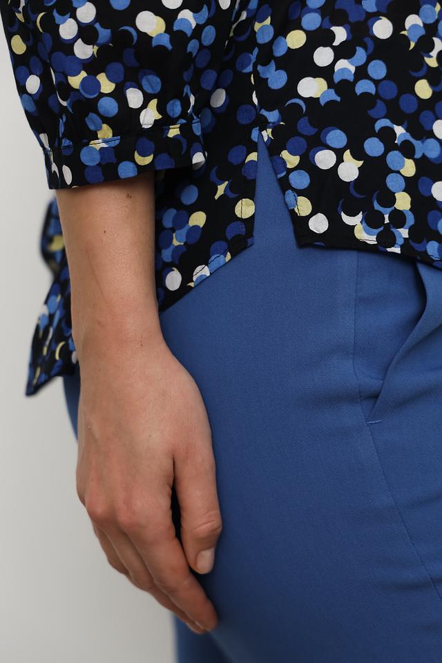 Эта блуза от Gerry Weber – идеальный выбор для создания элегантного и непринужденного образа. Блуза выполнена в чёрном цвете и украшена ярким принтом в горошек, выполненным в различных оттенках синего и жёлтого.