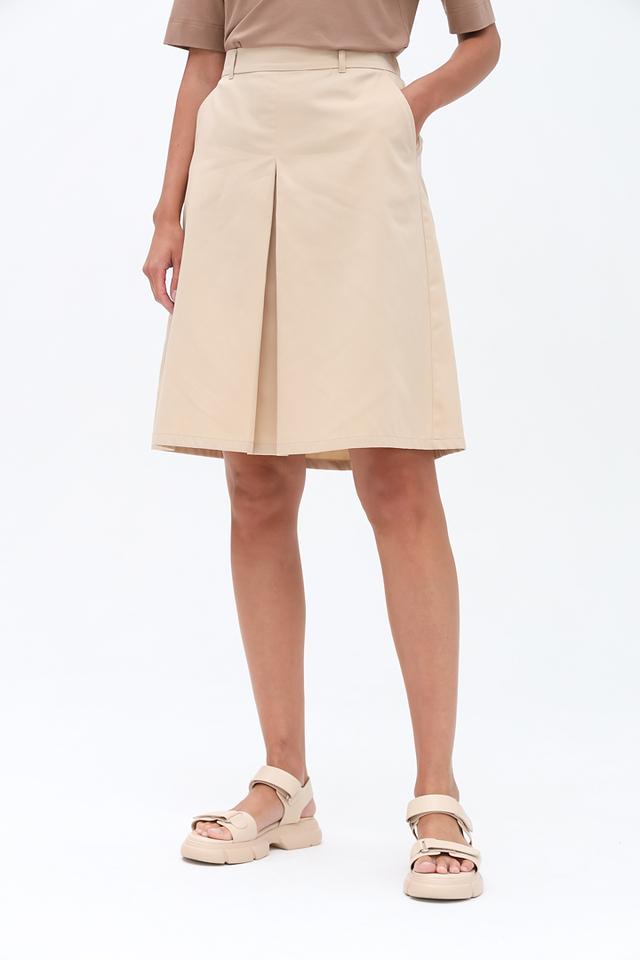 Юбка Gerry Weber EDITION в бежевом цвете – это элегантная модель прямого кроя с плиссировкой. Изготовлена из 100% хлопка, обеспечивающего комфорт и воздухопроницаемость. Состав: хлопок 100%