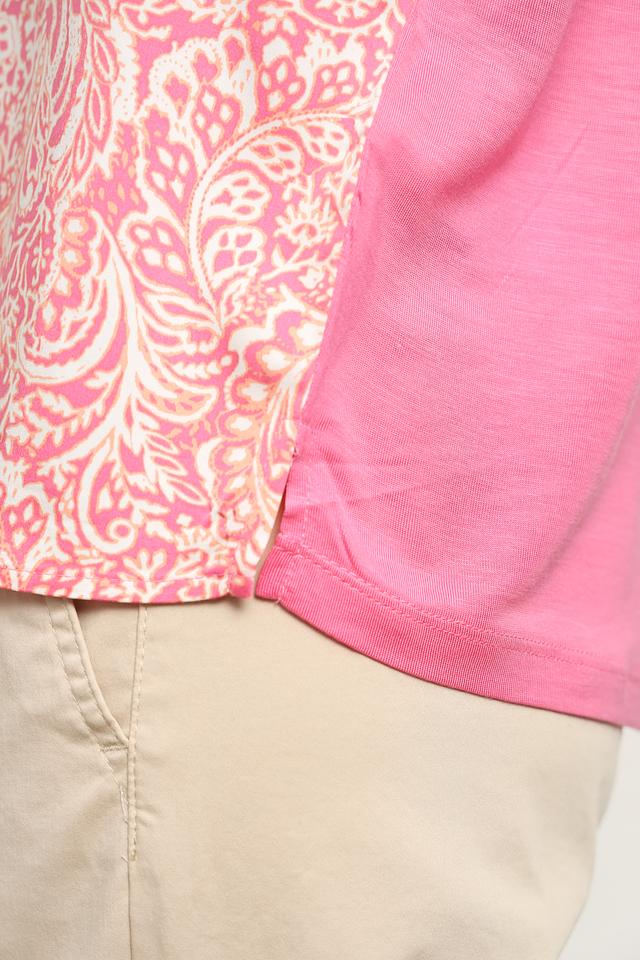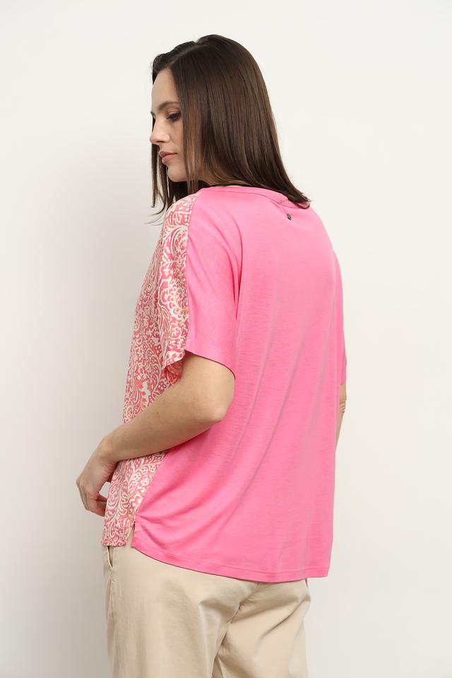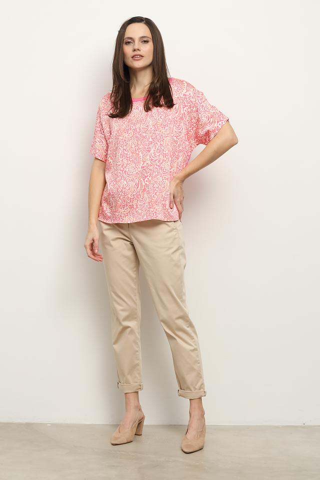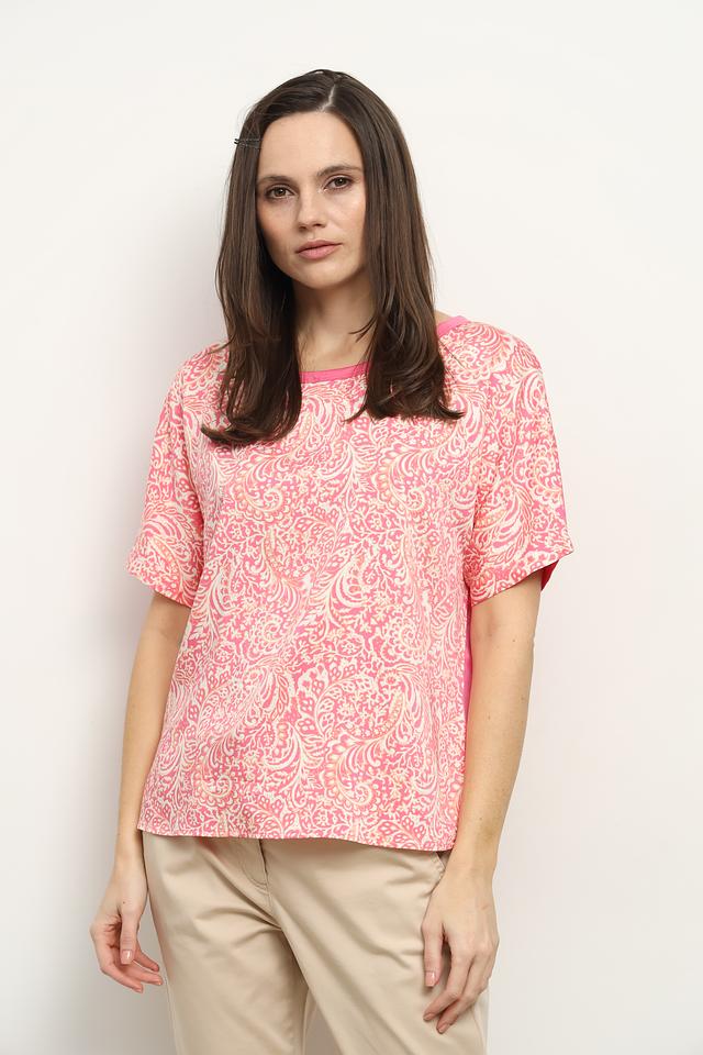 Розовая блуза Gerry Weber с ярким цветочным принтом и короткими рукавами. Изготовлена из мягкого лиоцела, обеспечивающего комфорт и воздухопроницаемость. Стильное дополнение к вашему гардеробу. Состав: лиоцел 100%