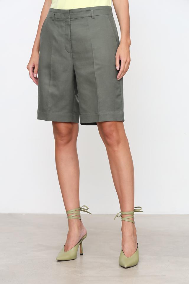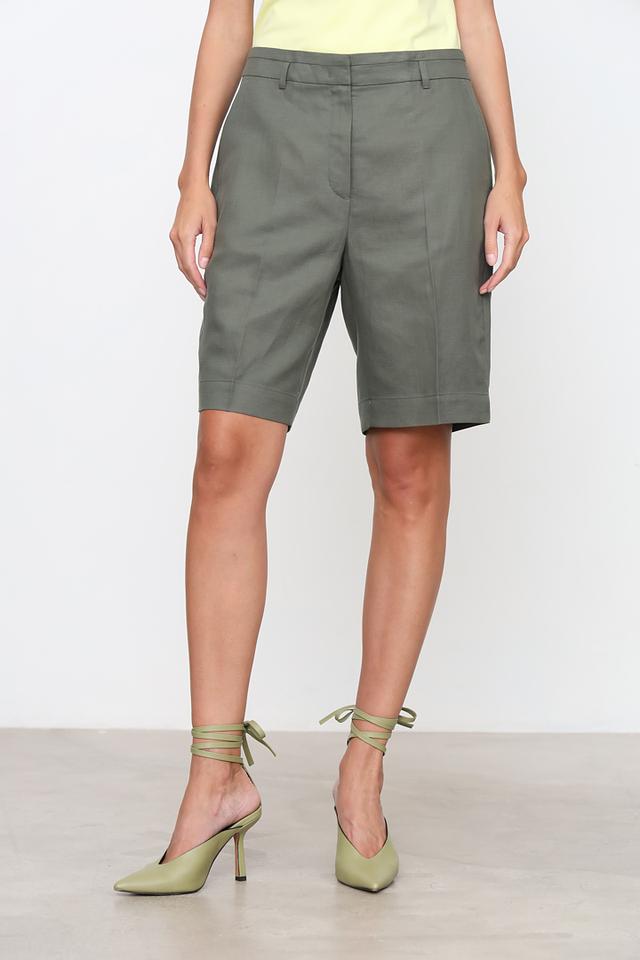 Шорты Gerry Weber хаки — стильная и комфортная модель прямого кроя. Изготовлены из натуральных материалов с добавлением лиоцелла для мягкости и приятных тактильных ощущений. Идеальный выбор для создания повседневных образов. Состав: лен 43%, лиоцел 38%, хлопок 19%