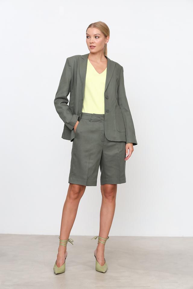 Состав ткани включает лен, лиоцел и хлопок, что делает шорты дышащими и приятными к телу. Идеально подходят для теплых дней и создания стильных образов. Шорты прекрасно сочетаются с топами, блузками и пиджаками.