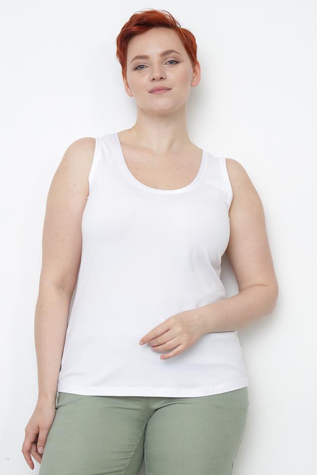 Топ имеет классический крой с округлым вырезом горловины и широкими бретелями. Благодаря простому дизайну, его легко сочетать с различными предметами одежды — от джинсов и брюк до юбок и шорт.