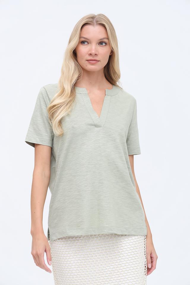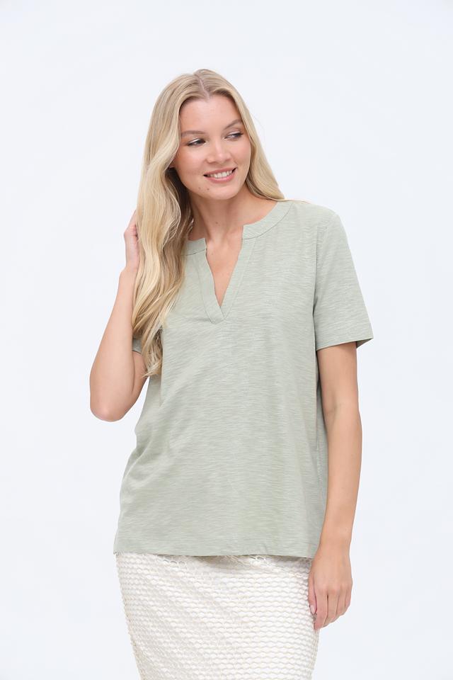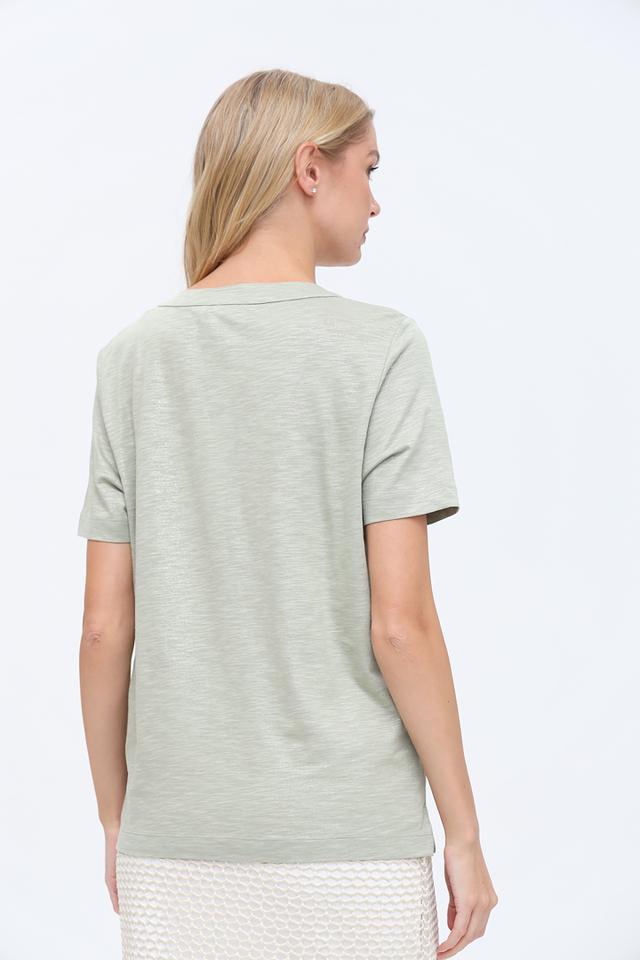 Женская футболка Gerry Weber оливкового цвета с V-образным вырезом и короткими рукавами. Изготовлена из мягкого и приятного к телу сочетания хлопка и модала, обеспечивающего комфорт в носке. Состав: хлопок 50%, модал 50%