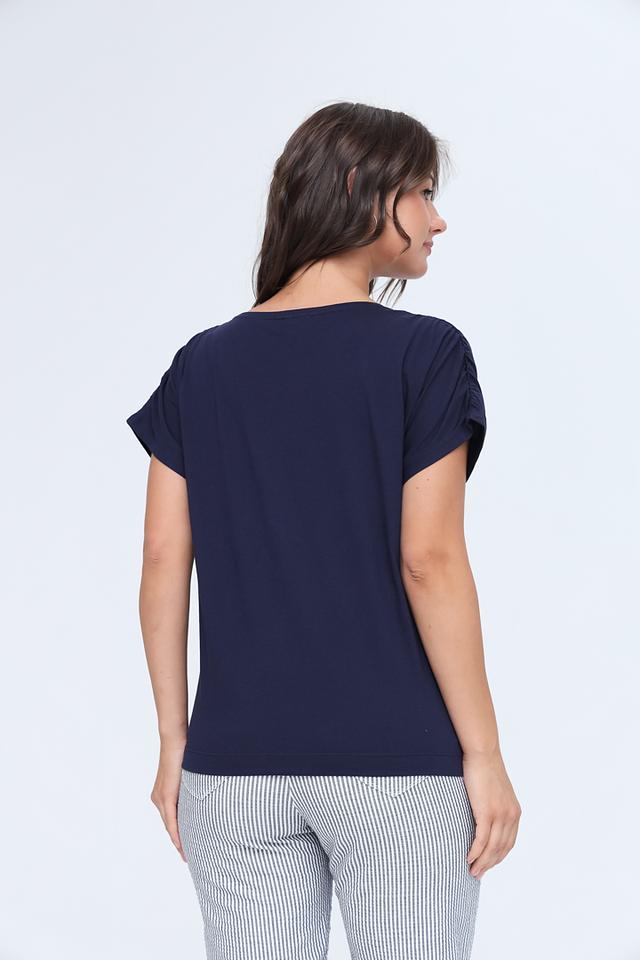 Женская футболка Gerry Weber темно-синего цвета с короткими рукавами-буфами. Изготовлена из 100% органического хлопка, обеспечивающего комфорт и воздухопроницаемость. Стильный и лаконичный дизайн. Состав: хлопок органич. 100%