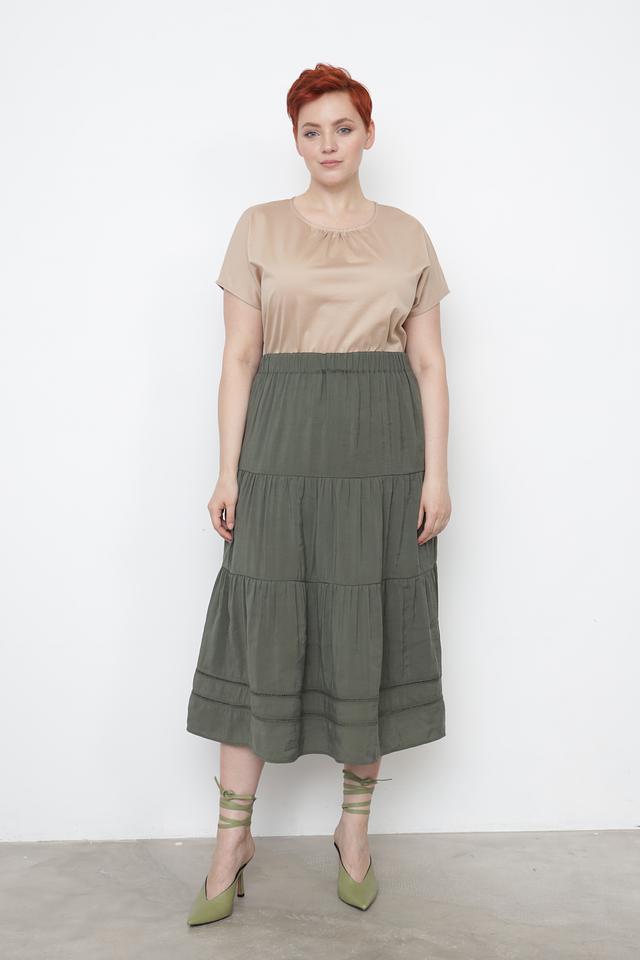 Эта юбка от Gerry Weber EDITION выполнена в спокойном хаки цвете и станет отличным дополнением к вашему гардеробу. Модель имеет длину миди и многослойный крой, создающий лёгкий и воздушный силуэт.