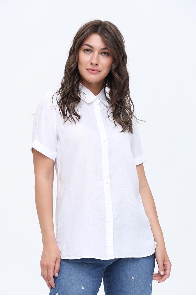Белый цвет рубашки универсален и легко сочетается с любой одеждой. Она отлично подойдёт для создания как повседневных, так и более формальных образов. Рубашку можно носить с джинсами, брюками или юбкой.