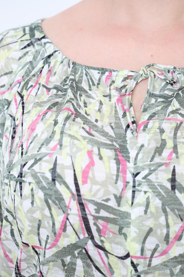 Женская блуза Gerry Weber светло-зелёного цвета с ярким цветочным принтом. Модель выполнена из лёгкой ткани с добавлением вискозы, что обеспечивает комфорт и приятные ощущения при носке. Состав: переработ.полиэстер 65%, вискоза 35%