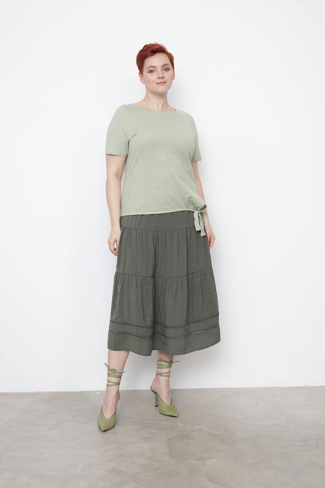 Женская футболка Gerry Weber EDITION оливкового цвета с коротким рукавом и текстурированной поверхностью. Модель выполнена из органического хлопка и дополнена завязками по бокам. Состав: хлопок органич. 100%