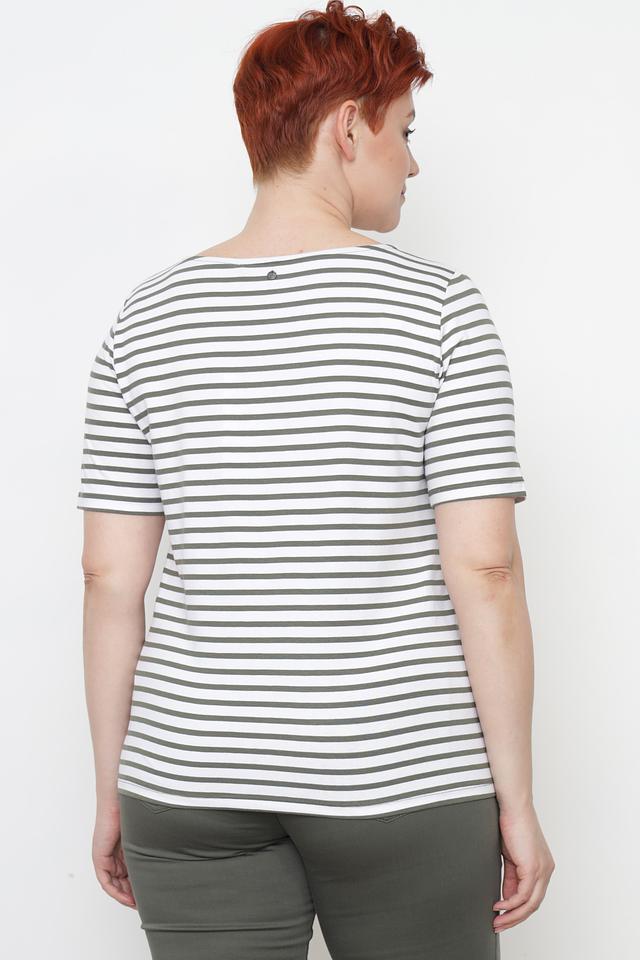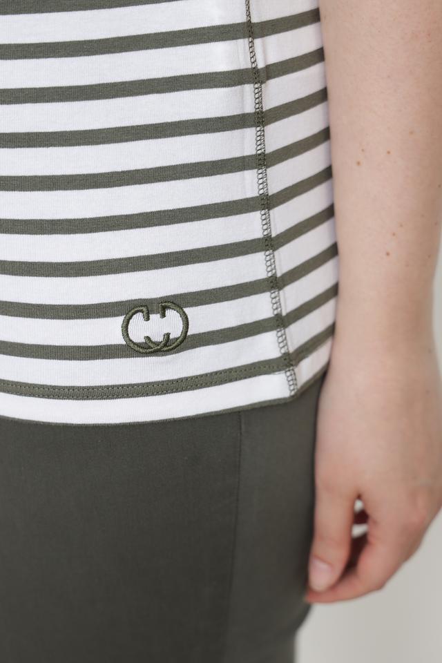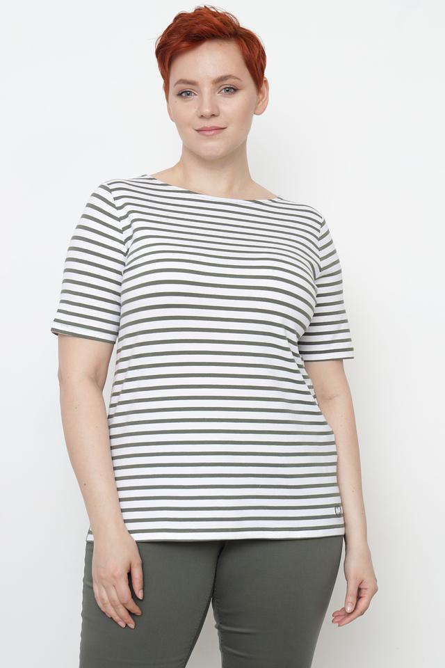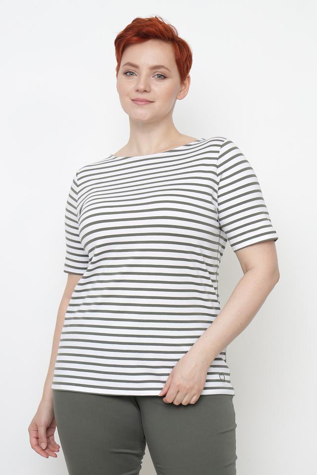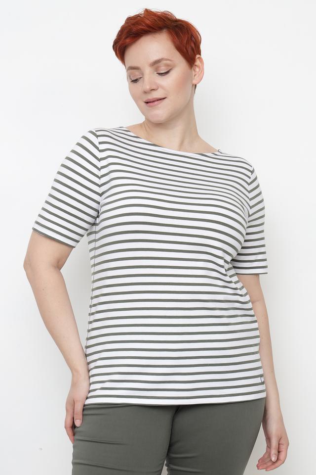 Эта футболка от Gerry Weber станет отличным дополнением к вашему гардеробу. Модель выполнена в классическом стиле с горизонтальной полоской, сочетающей белый и оливковый цвета.