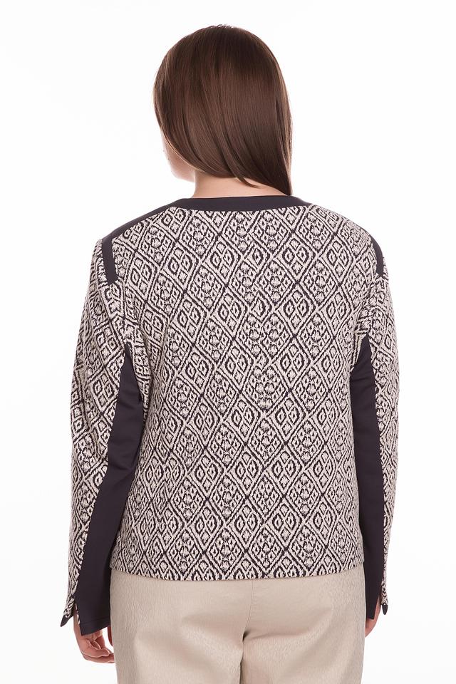 Этот жакет от Gerry Weber станет прекрасным дополнением к вашему гардеробу. Жакет выполнен в белом цвете с оригинальным геометрическим принтом в виде ромбов, выполненным в тёмно-синем цвете.