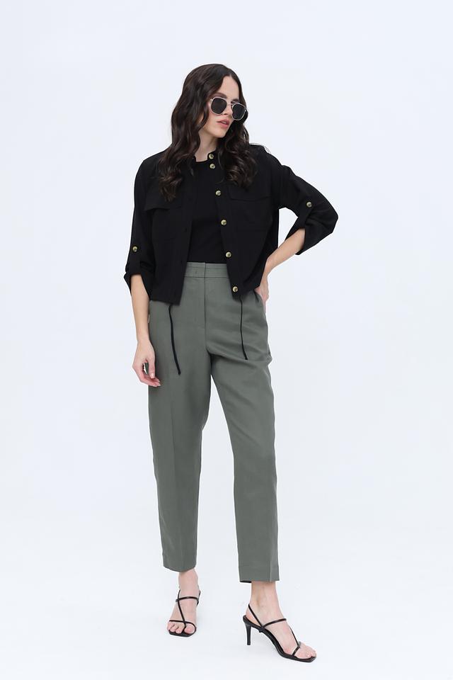 Сбоку предусмотрена шнуровка для регулировки силуэта. Жакет станет незаменимой вещью в вашем гардеробе, позволяя создавать разнообразные и модные комплекты.
