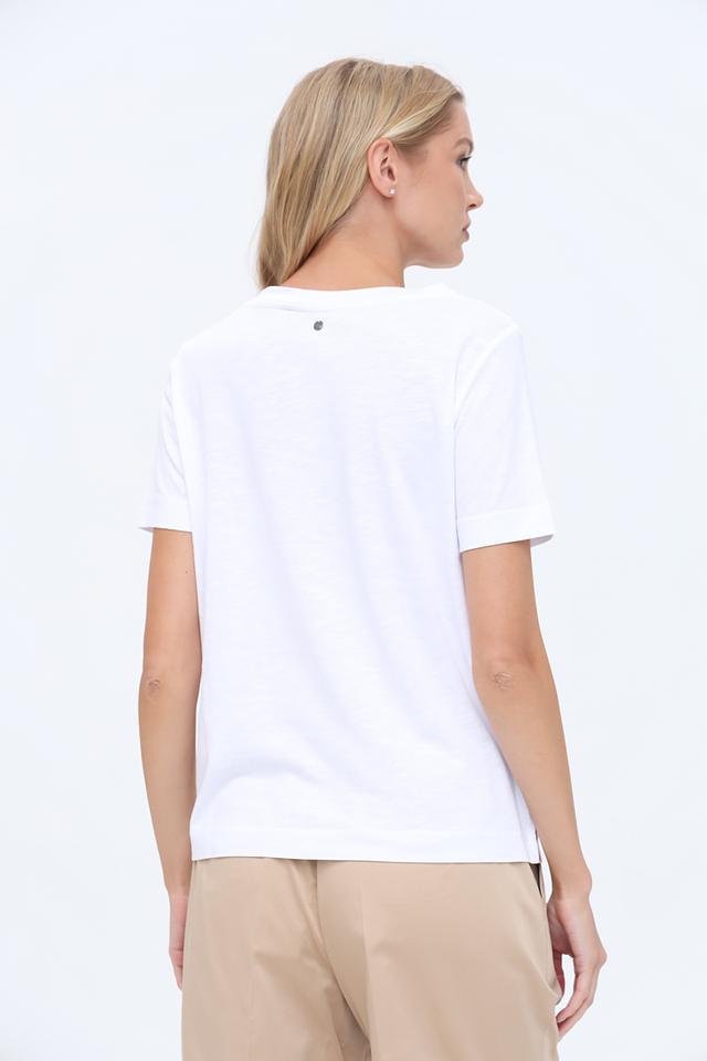 Круглый вырез горловины и короткие рукава обеспечивают комфортную посадку. Футболка идеально подходит для повседневной носки, а также для создания более нарядных образов в сочетании с юбками или брюками.