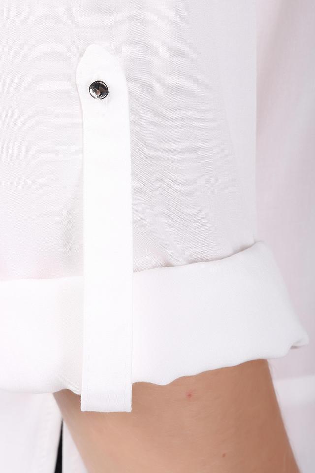 Блуза отличается продуманными деталями: воротник-стойка с разрезом и декоративными пуговицами, а также манжеты с фиксирующими ремешками, добавляют изделию изысканности. Светлый оттенок блузы прекрасно сочетается с различными элементами гардероба, позволяя создавать множество стильных комбинаций. Эта блуза станет незаменимой вещью в вашем шкафу, подчеркивая ваш безупречный вкус.