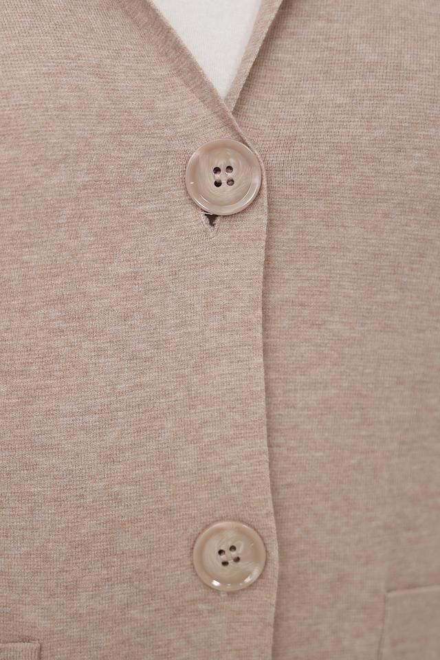 Состав ткани: 62% вискоза, 38% полиэстер. Вискоза придает жакету мягкость и приятные тактильные ощущения, а полиэстер обеспечивает долговечность и устойчивость к деформации.
