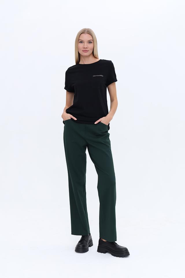Чёрная футболка Gerry Weber из 100% хлопка с небольшим карманом на груди, украшенным декоративной отделкой. Классический крой и лаконичный дизайн делают эту футболку универсальным элементом гардероба. Состав: хлопок 100%