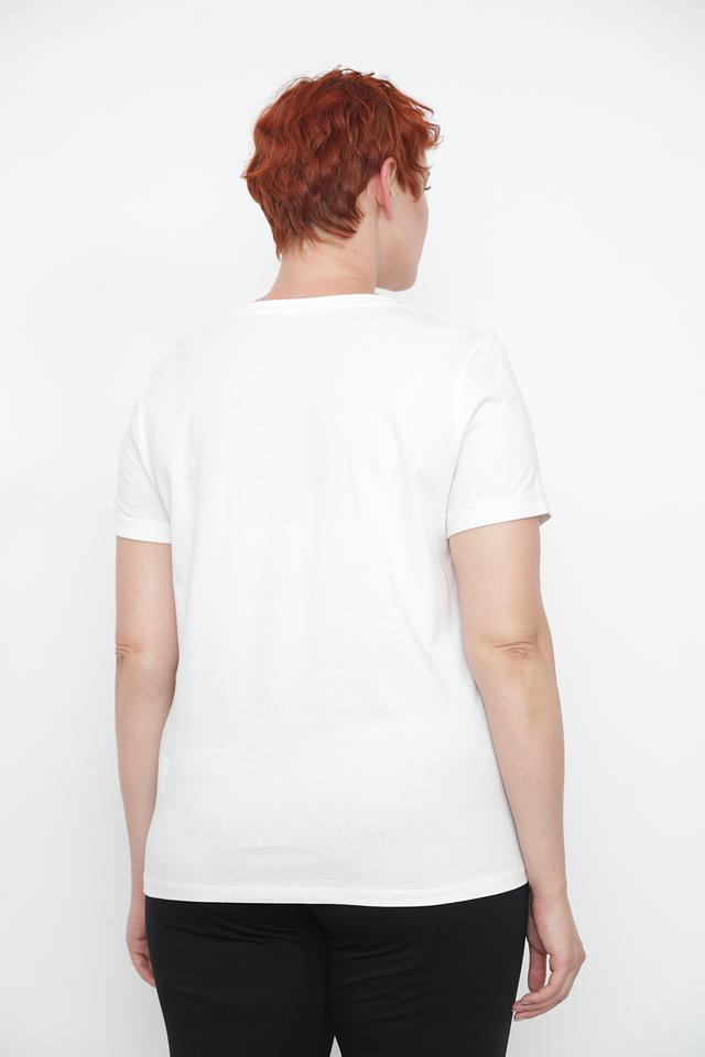 Круглый вырез горловины и короткие рукава обеспечивают комфорт в носке. Свободный крой футболки позволяет ей хорошо сидеть на фигуре, не сковывая движений. Эта модель идеально подходит для создания повседневных образов, которые сочетают в себе стиль и удобство.