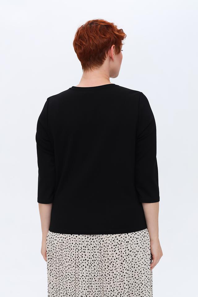 Чёрный пуловер от Gerry Weber с округлым вырезом и рукавом 3/4. Модель выполнена из мягкого трикотажа с деликатной вышивкой, придающей образу элегантность и женственность. Состав: лиоцел 64%, полиамид 31%, эластан 5%