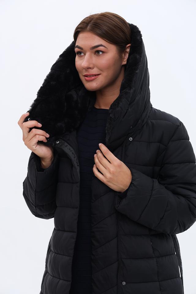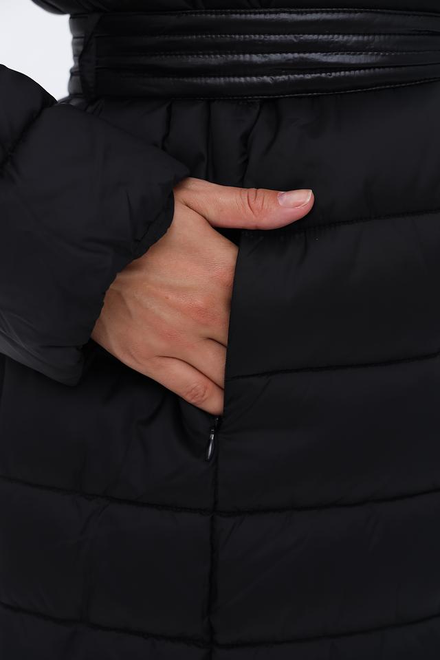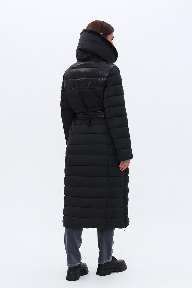 Высокий воротник отделан искусственным мехом, который создает уют и защищает от ветра. Пальто застегивается на молнию, а съемный пояс позволяет регулировать силуэт и подчеркнуть талию. Боковые карманы удобны для хранения мелочей.