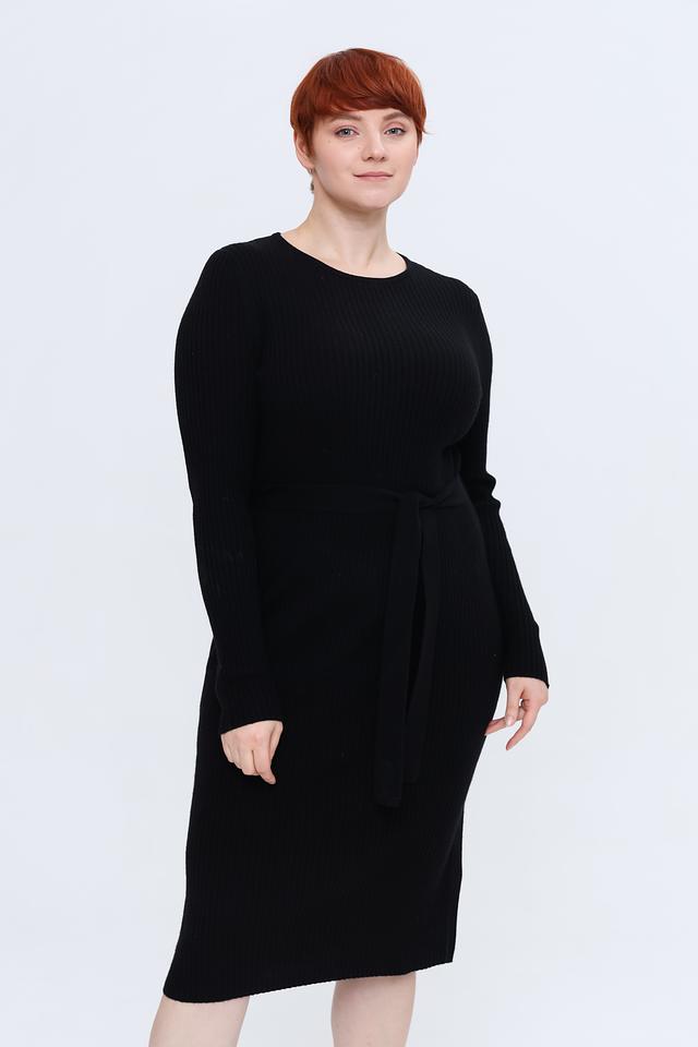 Платье имеет прямой силуэт, длину миди и длинные рукава. Особенностью модели является пояс, который подчеркивает талию и создает женственный силуэт. Текстура ткани – рубчик, что придает платью дополнительный объем и интересную фактуру.