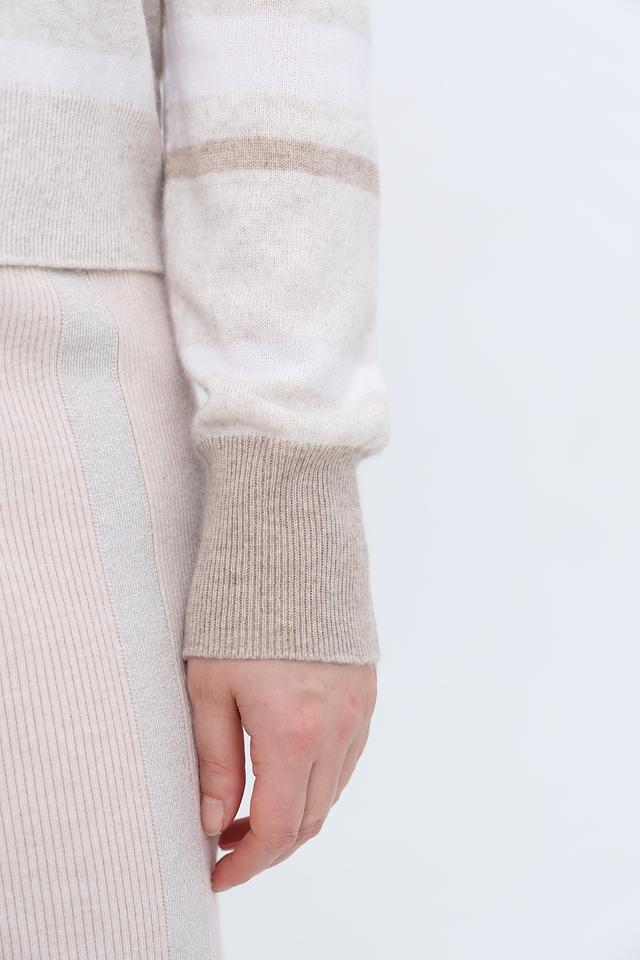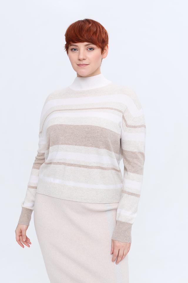 Бежевый пуловер Gerry Weber с полосками и высоким горлом станет отличным дополнением к вашему гардеробу. Изготовлен из мягкой шерсти и кашемира, обеспечивая комфорт и тепло в холодное время года. Состав: шерсть 90%, кашемир 10%