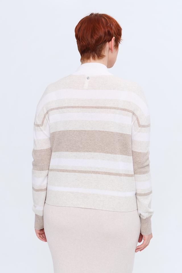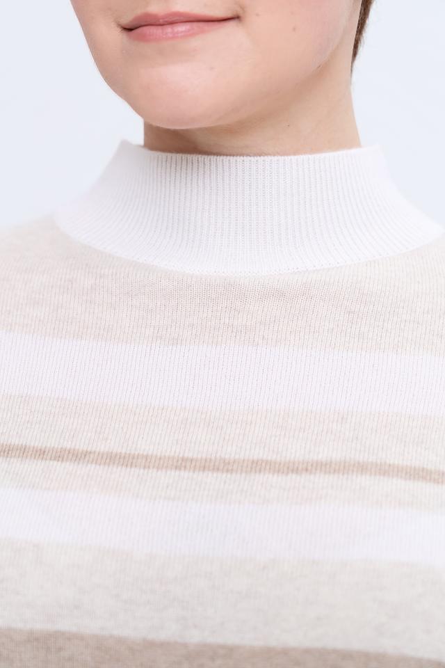Этот стильный пуловер от Gerry Weber выполнен в приятной бежевой гамме с классическим полосатым рисунком. Высокий горловина добавляет элегантности и защищает от холода.
