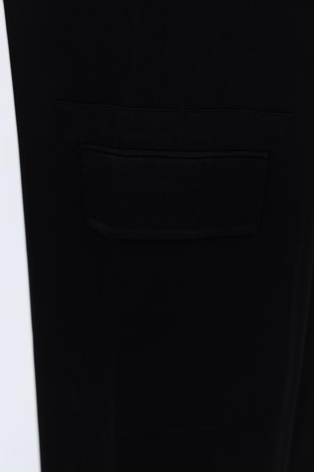 Брюки имеют прямой крой, который обеспечивает комфортную посадку и свободу движений. Особенностью модели являются накладные карманы в стиле карго, добавляющие образу современный акцент.