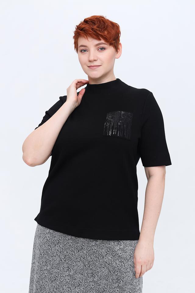 Чёрный пуловер от Gerry Weber с коротким рукавом и оригинальным декором на груди. Изготовлен из мягкого и приятного к телу трикотажа, станет отличным дополнением к вашему гардеробу. Состав: лиоцел 35%, хлопок 33%, переработ.полиэстер 32%
