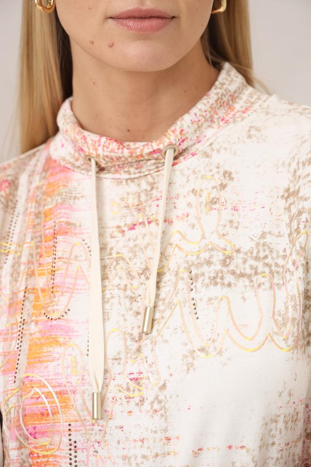 Блуза Gerry Weber бежевого цвета с ярким тропическим принтом станет стильным дополнением к вашему гардеробу. Модель с длинными рукавами и небольшим воротником-стойкой, украшенным шнурками, отличается комфортным кроем и высоким качеством материалов. Состав: вискоза 47%, модал 45%, эластан 8%