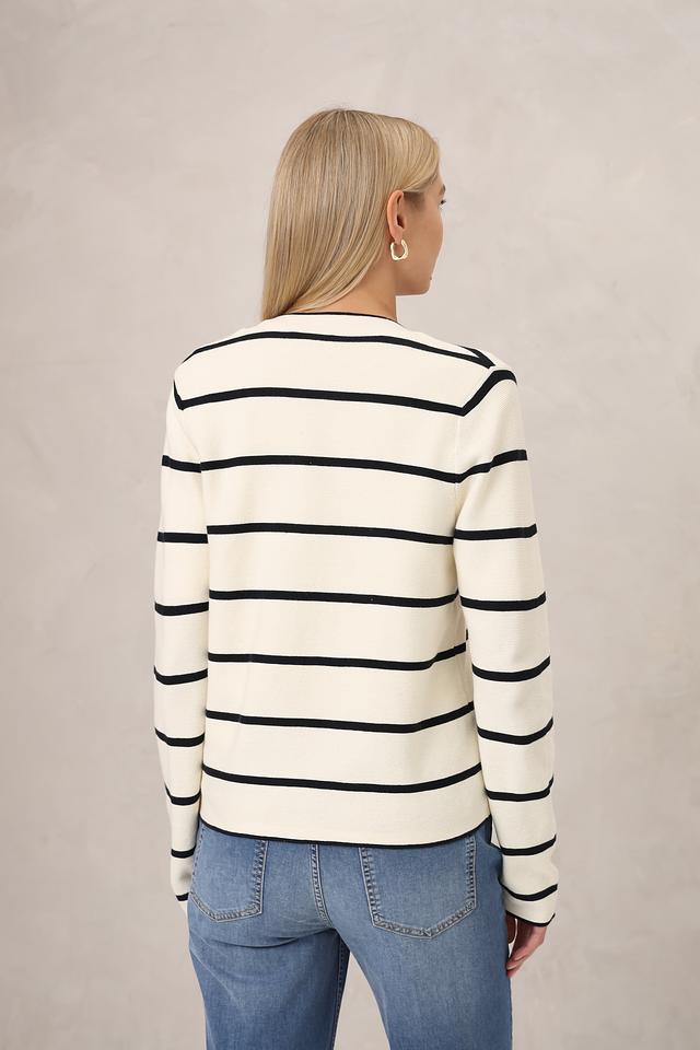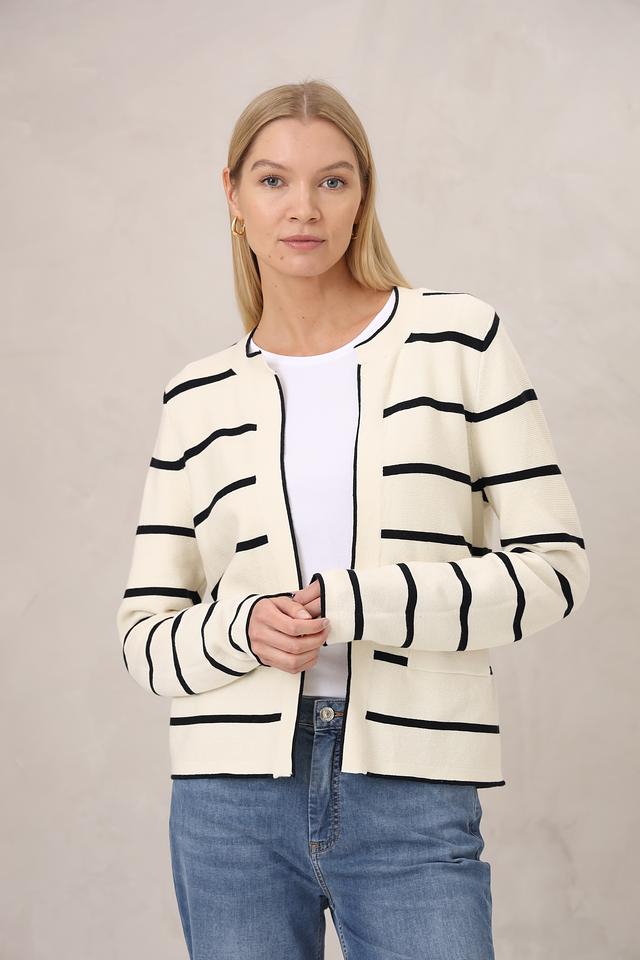 Этот жакет от Gerry Weber станет отличным дополнением к вашему гардеробу. Он выполнен в бежевом цвете с выразительным рисунком из черных полос, что придает ему современный и динамичный вид.
