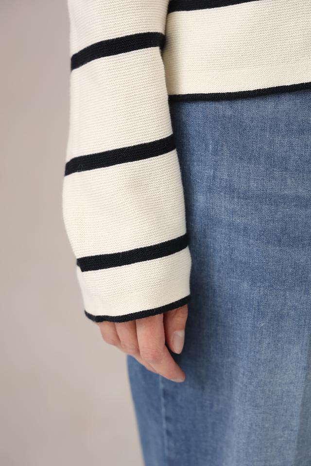 Жакет Gerry Weber бежевого цвета с контрастными черными полосками – стильное и комфортное решение для создания повседневных образов. Модель имеет классический крой и застегивается на пуговицы. Состав: хлопок органич. 92%, полиэстер 8%