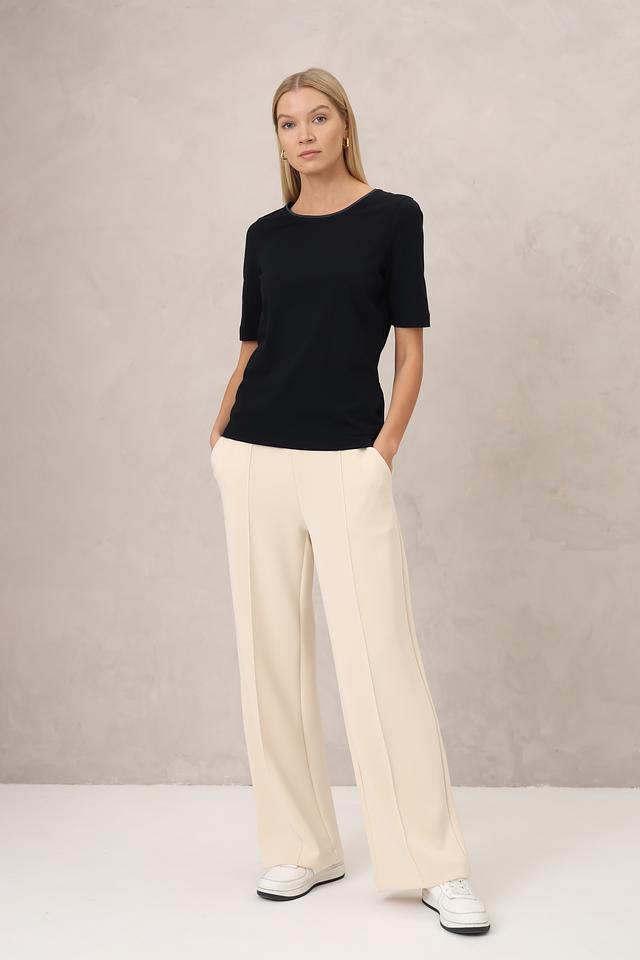 Чёрная футболка Gerry Weber EDITION из органического хлопка с круглым вырезом и отделкой горловины. Лаконичный дизайн и комфортный крой делают эту футболку отличным выбором для повседневного гардероба. Состав: хлопок органич. 94%, эластан 6%