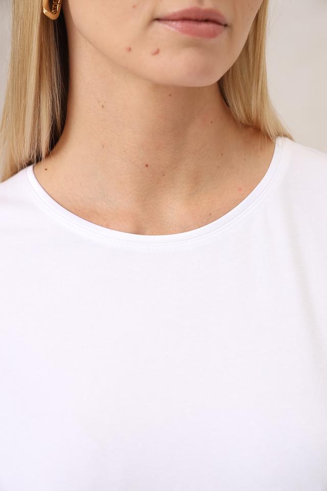 Классический крой с круглым вырезом горловины и короткими рукавами делает эту футболку универсальной и подходящей для любого случая. Белый цвет позволяет легко сочетать ее с различными элементами гардероба.
