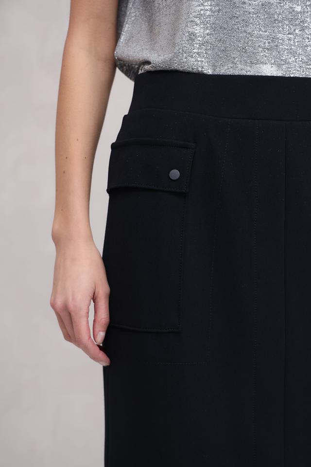 Модель имеет прямой крой, длину миди и небольшой разрез сзади, что придает ей изысканность и свободу движений. Боковые карманы добавляют практичности и функциональности. Эта юбка идеально подойдет для создания деловых и повседневных образов.