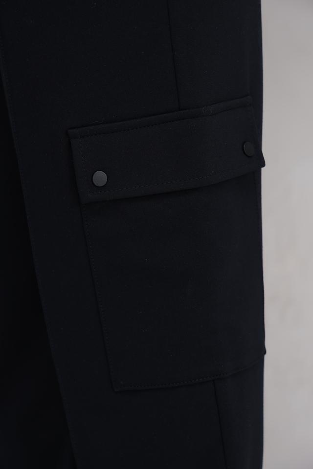 Брюки имеют прямой крой, который обеспечивает комфортную посадку и свободу движений. Боковой карман на штанине добавляет модели функциональности и оригинальности.