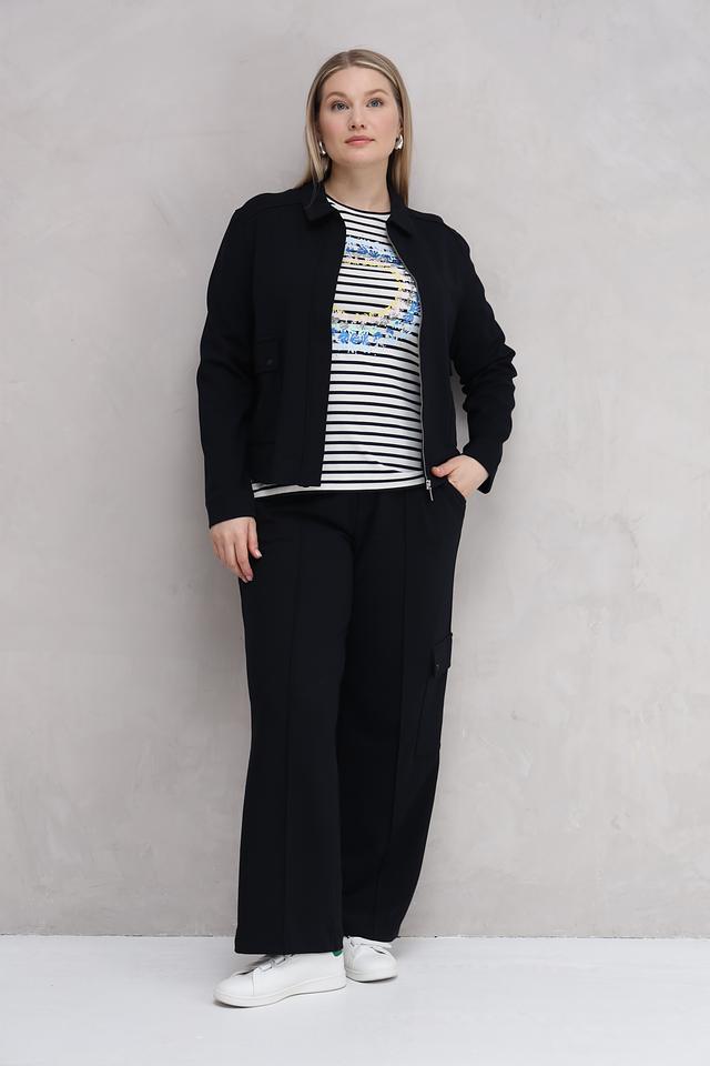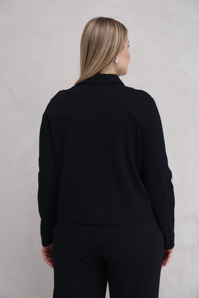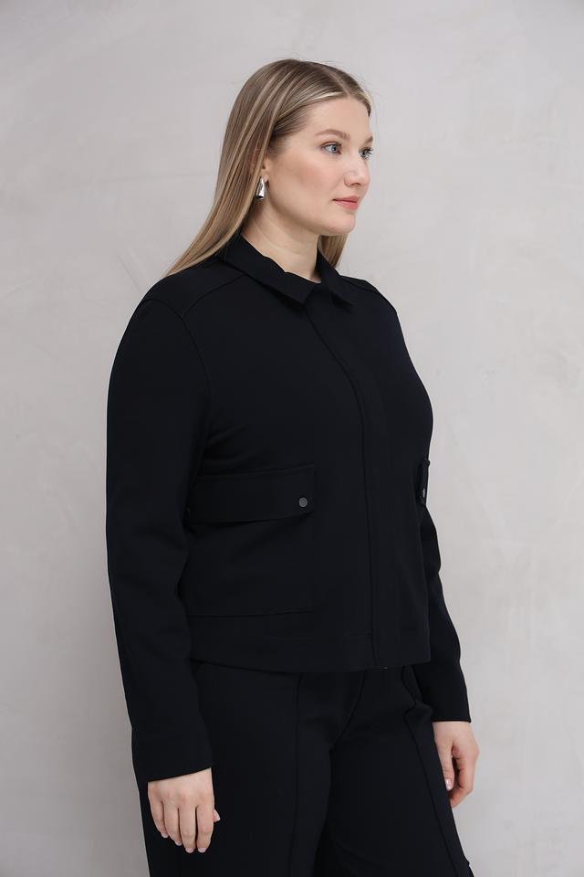 Жакет имеет приталенный силуэт, который подчеркивает фигуру, и воротник, добавляющий образу элегантности. Застежка – молния, что делает его удобным в носке. Два накладных кармана не только функциональны, но и придают жакету современный вид.
